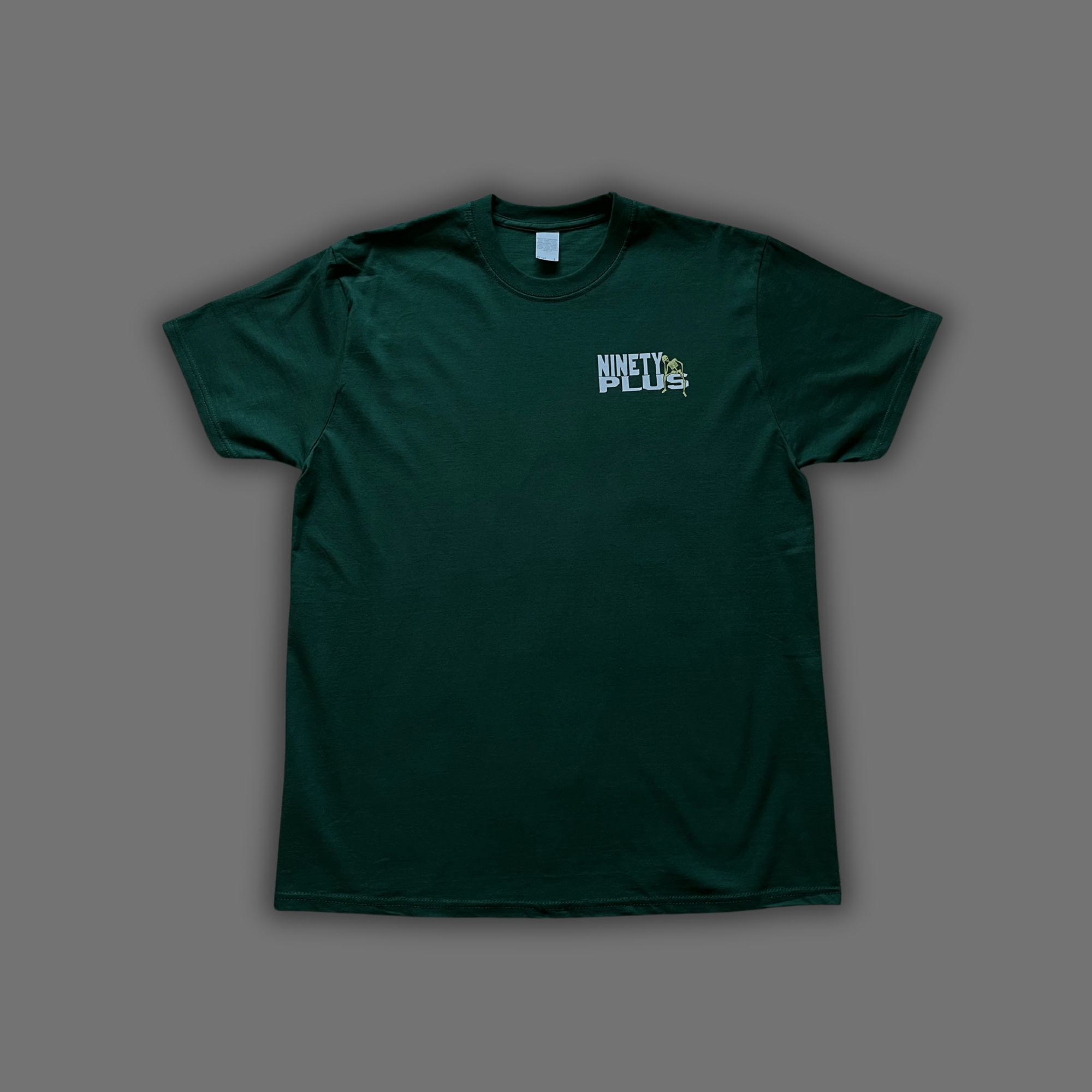 - Forest Green Tee with skeleton logo print & Ninety Plus logo back print