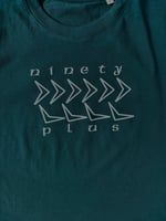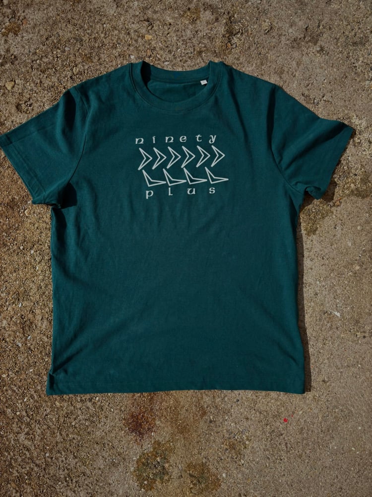 Emerald Green tshirt with front print design taking reference from Ireland’s iconic home shirt of the Italia ‘90 World Cup.