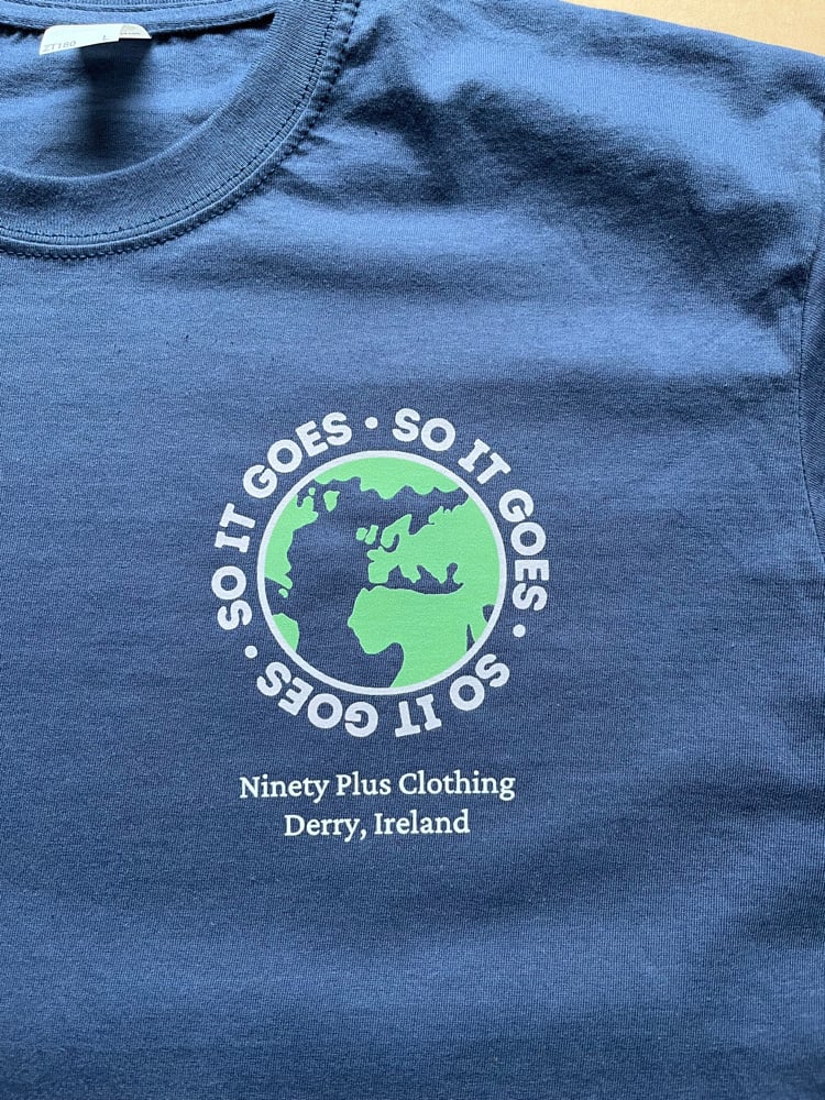 - Dark Blue Tee with 'So It Goes' design front & back print